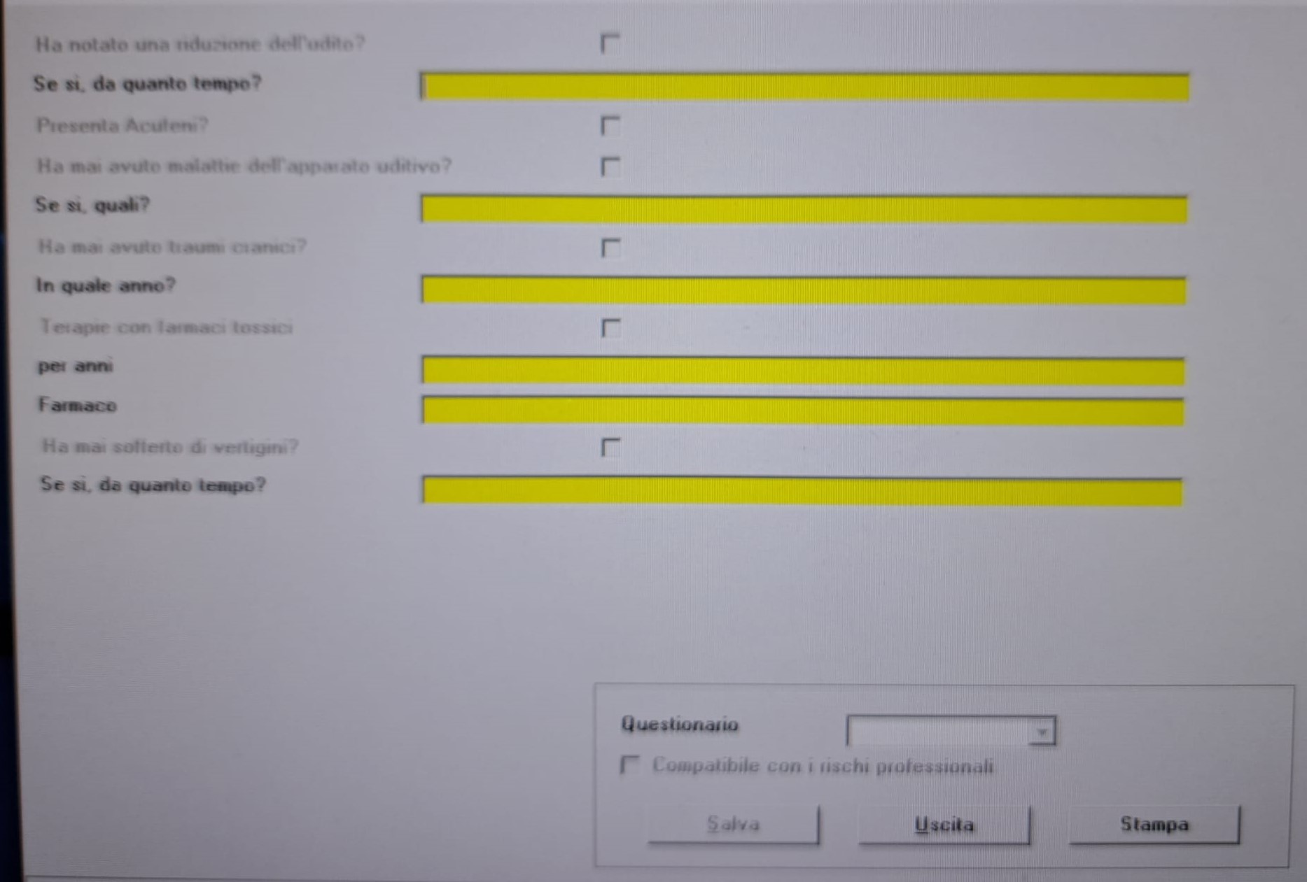Chiediamo la possibilità di inserire il questionario otovestibolare, fac-simile di quanto allegato